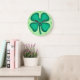 Lucky 4 Leaf Irish Clover reloj de pared verde