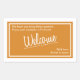 Este funky pegatina boda rectangular de bolsos de regalo fuera de la ciudad presenta una bienvenida inclinada en blanco, junto con su texto blanco personalizado sobre un fondo naranja de mandarina. Después de un largo día conduciendo o volando a su boda, recibirá a sus huéspedes fuera de la ciudad con una bolsa de bienvenida llena de aperitivos, bebidas y recuerdos locales. Este pegatina brillante situado en la parte delantera de la bolsa de bienvenida aporta un toque encantador. Productos de coordinación disponibles. ¿Desea cambiar el estilo de letra o el color o tamaño del texto? Haga clic en el botón naranja "¡Personalizar!" bajo el diseño. Esto le permitirá seguir personalizar de su diseño.