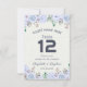 Plantillas de tarjeta de asiento de boda botánico acuarela color lavanda azul claro vintage número de mesa / tarjeta de acompañante.
