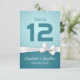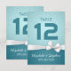 Plantillas de Tarjeta de Asiento de Boda / Número de Mesa / Tarjeta de Acompañante - Fondo Turquesa y Cinta Blanca Vintage.