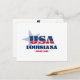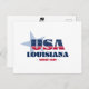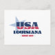 Postal de Luisiana. Un diseño tipográfico creativo que encapsula la esencia de Luisiana con colores rojo, blanco y azul audaces y elementos patrióticos, incluidas estrellas y rayas.