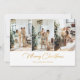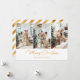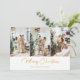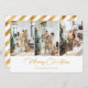 Relieve metalizado blanco y dorado de lujo Tarjeta fotográfica de Feliz Navidad con un saludo de vacaciones de caligrafía y collage de fotos en la parte delantera y elegantes rayas y caída de nieve en la parte trasera. El efecto Relieve metalizado dorado sólo se simula en las obras de arte. Personalice fácilmente esta tarjeta de Navidades con sus fotos y texto.