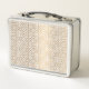 Lujoso patrón geométrico de oro árabe Metalizado Almuerzo Box - Elegante Funda de transporte cultural Llevar sus comidas con elegancia con esta lujosa caja de almuerzo Metalizado patrón geométrico de oro árabe oro de lujo. Decorado con un imponente motivo geométrico de inspiración islámica, dorado sobre negro, atemporal, este robusto cajón de hojalata reúne el arte cultural y la utilidad moderna. Diseñado a partir de un metalizado duradero con una impresión nítida y de vanguardia y un cierre seguro, es ideal para el uso diario, perfecto para el trabajo, los viajes o los almuerzos escolares. La forma compacta (aprox. 8″ × 5″ × 2,5″) se ajusta perfectamente en totes o mochilas. Personalice con iniciales, nombres o un mensaje significativo para crear un regalo atesorado y único. ¡Aumenta la comida diaria con un toque cultural y un estilo refinado!