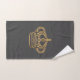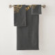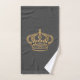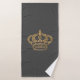 Lujosas toallas de baño gris oscuro de corona dorada.