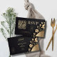 Eleva tus invitaciones de boda con nuestra "Tarjeta de Tarjeta de RSVP con Código QR para sitio web de boda islámica floral dorada real y lujosa". Esta tarjeta exquisita presenta un impresionante fondo floral dorado real. La parte delantera muestra un "RSVP" prominente y un código QR que enlaza con el sitio web de su boda. La parte posterior está adornada con la sagrada caligrafía árabe "wa khalaqnakum azwajan" junto con su significado y referencia coránica, los nombres de la pareja, "Inshallah", la fecha del evento y un monograma personalizado. Esta elegante tarjeta combina a la perfección la tradición y la tecnología.