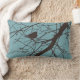 Disponible en estilo y cuadrado "lumbares", esta almohada ofrece una silueta de un pequeño pájaro de la curruca, encaramada en un árbol desnudo del invierno. En marrón en aguamarina - fondo azul.