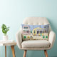 Una antigua cabaña de playa reconvertida en una almohada de tiro. ¡Colorido y que recuerda a las vacaciones familiares en la playa! La obra es una pintura del artista dagdart.