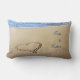 Las parejas personalizadas lanzan almohadas, una playa temática con corazón en la arena. Nombres de parejas personalizados a la derecha del corazón. Regalo único boda o regalo de aniversario para la pareja feliz.