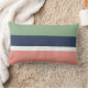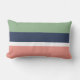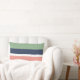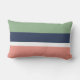 Paleta de colores de la Marina Coral almohada lumbar decorativa con rayas horizontales de suculentos tonos verdes, corales y azul marino para su inspirado diseño de decoración casera.