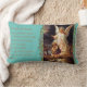 La bella pintura de un ángel de la guarda vigilando a los niños que cruzan un puente peligroso adorna esta almohada de tiro con las palabras de la oración Ángel de la Guardia.