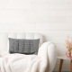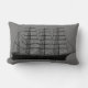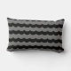 almohada de lanzamiento gris con imagen de barco vintage de vela oceánica en la parte delantera y patrón de onda negra en la parte trasera.