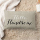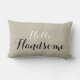 Diseño de moda rústico-contemporáneo, con texto de escritura negra. almohada de lanzamiento motivacional con las palabras "Hola guapo". Fondo de efecto fotográfico de lino beige IMPRESO. Personalizado De Estilo De Vida - Consejos Positivos - Cojín decorativo - Para Sus Soluciones De Decoración Doméstica. Elke Clarke© Más estilos y colores disponibles en nuestra tienda en www.zazzle.com/monogramgallery. Ideal para tu dormitorio, silla favorita, como decoración divertida en tu habitación familiar o como complemento decorativo formal de tu salón.