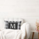 Personalizar esta almohada monograma con la familia inicial. Diseño de textura de flannel para un ambiente cálido y acogedor. Patrón de manchas negras y blancas.