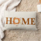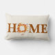 Esta almohada de tiro se muestra en un color blanco roto con una caída de otoño deja el diseño de impresión con un texto en casa. Personalizar esta almohada o compra como está.