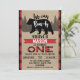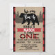 El lindo leñador de oso cree en la temática invitación de primer cumpleaños para un niño pequeño. El diseño presenta un oso, un cartel, un patrón dorado, una palabra grande en un patrón plateado y más. Ideal para una fiesta de cumpleaños con tema de leñador y una manera muy linda de invitar a los invitados a la fiesta de cumpleaños de tu pequeño.