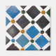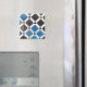 Este imán de inspiración mediterránea presenta un diseño de mosaico audaz con estrellas y cuadrados. Los colores azul, negro y blanco llamativos lo convierten en una pieza atractiva para tu frigorífico.