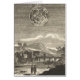 Astronomía de ilustracion vintage y dibujo de época del Renacimiento blanco y negro celestial de un paisaje y la luna (lune) en el cielo nocturno con estrellas y constelaciones. La gente está parada al lado de un río, un puente y edificios. Creado en 1683 por Allain Manesson Mallet (1630 - 1706), cartógrafo e ingeniero francés.