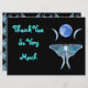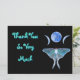 Luna Moth en un estilo acuarela bajo una luna azul y dos lunas de media luna sobre un cielo negro nocturno y un lugar para un personalizado Gracias.