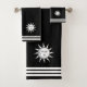 Tres rayas sobre el sol blanco negro y personalizado y la imagen de la luna. Toallas modernas y elegantes.