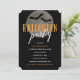 Esta invitación a la fiesta de Halloween muestra una luna llena gigante sentada detrás de dos murciélagos negros arriba. Las palabras "Halloween Party" están directamente debajo, seguidas por los detalles de su fiesta debajo. Gráficos ©SonyaDeHart