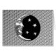 Tarjeta de nota en luna Art Deco y diseño de estrellas en plata cepillada con y esmalte negro sobre fondo metálico de plata falsa