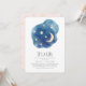 Esta luna y estrellas es una invitación a la ducha de bebé chica es perfecta para una simple ducha de bebé. El diseño moderno y caprichoso presenta una forma de nubes acuarela azul marino con una luna de barrio amarilla y estrellas.