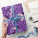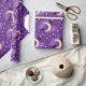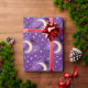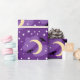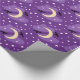 Papel de envolver de Halloween de estilo mágico con luna, estrellas, nubes y murciélagos negros.