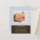 "Lunares" anuncio de nacimiento en azul y marrón con foto. Personaliza esta plantilla de tarjeta postal de foto con la foto y detalles de tu bebé para un anuncio de nacimiento único.
