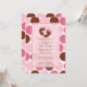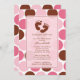 La invitación adorable de Baby Shower que ofrecía una jirafa rosa clara con los lunares marrones fijó en un fondo de la hoja de la selva. Artículos a juego disponibles en nuestra tienda. Perfeccione para una fiesta de bienvenida al bebé de la niña. estudio ©Stockberry