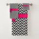 Patrón clásico y atrevido de lunares negros y blancos con un lazo rosa fuerte. Los lunares son un patrón en V invertida, donde cada lado se une en el punto sin interrupción. El resultado es un patrón atrevido, clásico y sin costuras de zig-zag. Similar, pero ligeramente diferente al patrón tradicional de espiga de pescado.