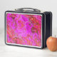 Esta vívida caja de almuerzos incluye ráfagas de rosa caliente, magenta, negro, crema y oro. Esta única caja de almuerzo es una manera colorida y divertida de viajar alrededor de tu almuerzo o muchas otras cosas. También hace un buen regalo. El guarnecido es negro, pero se pueden elegir otros colores.