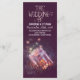morado rústico romántico tarro de albañil y luciérnagas brillantes iluminan el programa de boda de jardín, boda de campo...