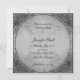 Este diseño hermoso y elegante, llamado luto de la muerte de la invitación (de mi juventud), tiene un fondo negro y gris hermoso del damasco que cree un marco del círculo. En el centro hay un ataúd rojo y negro hermoso con una cruz en el centro. Apenas debajo de ella las palabras, "estando de luto la muerte de los años 40 de Juan" se imprimen en un texto gótico del estilo. ** ENVÍEME POR CORREO ELECTRÓNICO POR FAVOR PARA CAMBIAR SU TEXTO EN EL FRENTE ** la parte posterior tiene una frontera de coordinación con su texto adaptable para una fiesta de cumpleaños o cualquier otro acontecimiento.