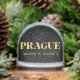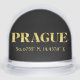 Domed snow globe features Prague, Czech Republic latitude and longitude map coordinates in gold fonts on black background. A perfect keepsake gift!