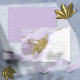 Este diseño a medida, con una tinta de alcohol abstracta en tonos de lavanda suave a violeta lila con acentos dorados brillantes, es perfecto para una boda romántica y elegante. El boda "Cena de ensayo" que se muestra aquí proporciona una plantilla para añadir fácilmente los detalles del evento. Buscar ID990 para ver otras piezas en este conjunto de bodas coordinado.