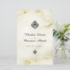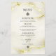 Tarjetas de menú Boda de Tejido de Mármol Dorado de lujo. Eleva la recepción de tu boda con estas exquisitas tarjetas de Boda de texto de mármol dorado. Diseñadas con una impresionante textura de mármol dorado, estas elegantes cartas exudan un toque de opulencia y sofisticación. En la parte delantera, los nombres de la pareja se muestran de forma elegante con letras florales, junto con la ubicación y fecha de su celebración especial. Al revés, la carta se despliega con la misma lujosa textura de mármol dorado, mostrando una deliciosa selección de entrantes, platos principales y postres presentados en una elegante tipografía. Estas bellas tarjetas de menú no sólo informarán a los clientes, sino que también le darán un toque de elegancia real a las mesas de la recepción de bodas. Crea una impresión duradera con estas exclusivas y lujosas tarjetas de menú que complementan perfectamente su día especial.
