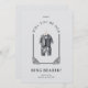 Our card stands out for its sophisticated and charming design. The ornate dome arch effect creates a magical and luxurious atmosphere, delicately framing the illustration of a black suit. This design evokes a fairy tale feeling, perfect for the occasion. The black suit, detailed in its illustration, symbolizes elegance and charm, reflecting the importance of the ring bearer's role in your wedding.