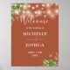 Este elegante eucalipto verde luces botánicas de cuerda de bienvenida de terracota boda puede ser personalizado con su información en tipografía de moda. Diseñado por Thisisnotme©