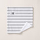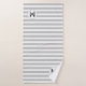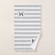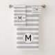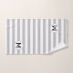 Toalla elegante con letra M con rayas de color gris plateado y blanco en el fondo. toallas modernas de moda.