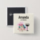 Botón con una imagen deliciosa. 3 macarones coloridos, rosa, verde y azul con un elegante ramo de flores subió y un toque de color rosa. Una copa de vino de silueta a un lado. ¡Delicioso y elegante también! Fondo amarillo claro.Personalice con un nombre y profesión / título.