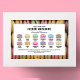 Etiqueta de sabor a macarones de personalizable completo para cajas o torres variadas. Con 12 gráficos de sabores de macaron que le permiten cambiar el caparazón de macaron y rellenar colores, fuentes de moda, nombre de panadería y detalles de contacto. Puede agregar o quitar macarones cuando necesite crear tantos nombres de sabores como necesite. Cree un pegatina de menú de sabores de macaron profesional para sus cajas de regalo o torres de macaron variadas.