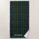 Toalla de playa de diseño en el clásico colorido clan escocés MacBride de lona tartán. Personalice el texto blanco, en la parte inferior, para que se ajuste a sus necesidades.
