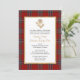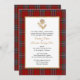 El elegante clan MacFarlane tartan plaid, sienta el telón de fondo para esta invitación a bodas inspirada en Escocia. Los gráficos de una superposición de texto en blanco de borde dorado tienen gráficos de un cardo dorado, en la parte superior. Todo el texto está listo para personalizar su día especial. Hay productos que coinciden.