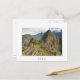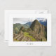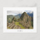 Postal de las ruinas de la antigua ciudad inca Machu Picchu en el Valle del Sagrado Urubamba cerca del Cusco en Perú con una frontera blanca y el texto: Perú.