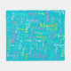 Acua de texto tipográfico de nombre corto, rosa, amarillo y blanco sobre un diseño de manta de personalizado de fondo de agua oscura. El color de fondo se puede cambiar si es necesario. Divertido texto gráfico personalizado manta personalizada. Ideal para el coche, acampando para las noches de invierno o excursiones. Personaliza tu propio nombre corto, actualmente lee Macy para ayudar con la personalización y otras longitudes de nombres por favor contáctame. © Arte y diseño de Sarah Trett para www.mylittleeden.com