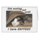 ¿Te sientes así hasta que tomes el café? "¡¡No salgo hasta que tenga café!!" Macy, una joven gata calico de sangre completa, ha subido bajo una alfombra pensando que se esconde. ¿Buscando más impresiones o productos? Siéntase libre de visitar mi tienda: http://www.zazzle.com/timelessmomentsphtgy Esta foto fue tomada por Jennifer White con Moments Photography y convertida en arte digital.