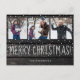 Rústica casa de campo estilo vacaciones de invierno tarjeta de saludo en un oscuro fondo de madera de granero con caída de nieve con un collage de tres fotos, un gran texto editable de "¡Feliz Navidad!" y tu firma. ++++++++ Personalízalo con tus fotos y texto!