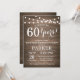 Fondo de madera de la invitación de cumpleaños número 60 de Rustic Surprise con String Lights. 13. 15. 16. 18. 20. 21. 30. 40. 50. 60. 70. 80. 90. 100. Cualquier edad. Cumpleaños de adultos. Fiesta de cumpleaños de hombre o mujer.