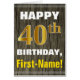 Las características del este de felicitación diseño cumpleaños-temáticas simples de la tarjeta un deseo caliente del cumpleaños tienen gusto del "40.o CUMPLEAÑOS FELIZ, Primero-Nombre!" en el frente, en texto intrépido en un falso fondo de madera del modelo del aspecto. El número del cumpleaños tiene un falso/una imitación oro-como aspecto del colorante. El nombre en el frente puede ser personalizado. Las características interiores un mensaje del cumpleaños que puede ser modificado para requisitos particulares. Una tarjeta de felicitación como esto podría ser una manera de la diversión de entregar deseos del cumpleaños alguien que está celebrando su cuadragésimo cumpleaños. [~Z0000280]