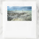 Pegatina fotográfico rectangular de un árbol muerto sobre un arrecife de coral negro esperando su decadencia en medio de la laguna azul perfecta de un atolón del Pacífico en la isla de la Polinesia Francesa, archipiélago de Tahití.